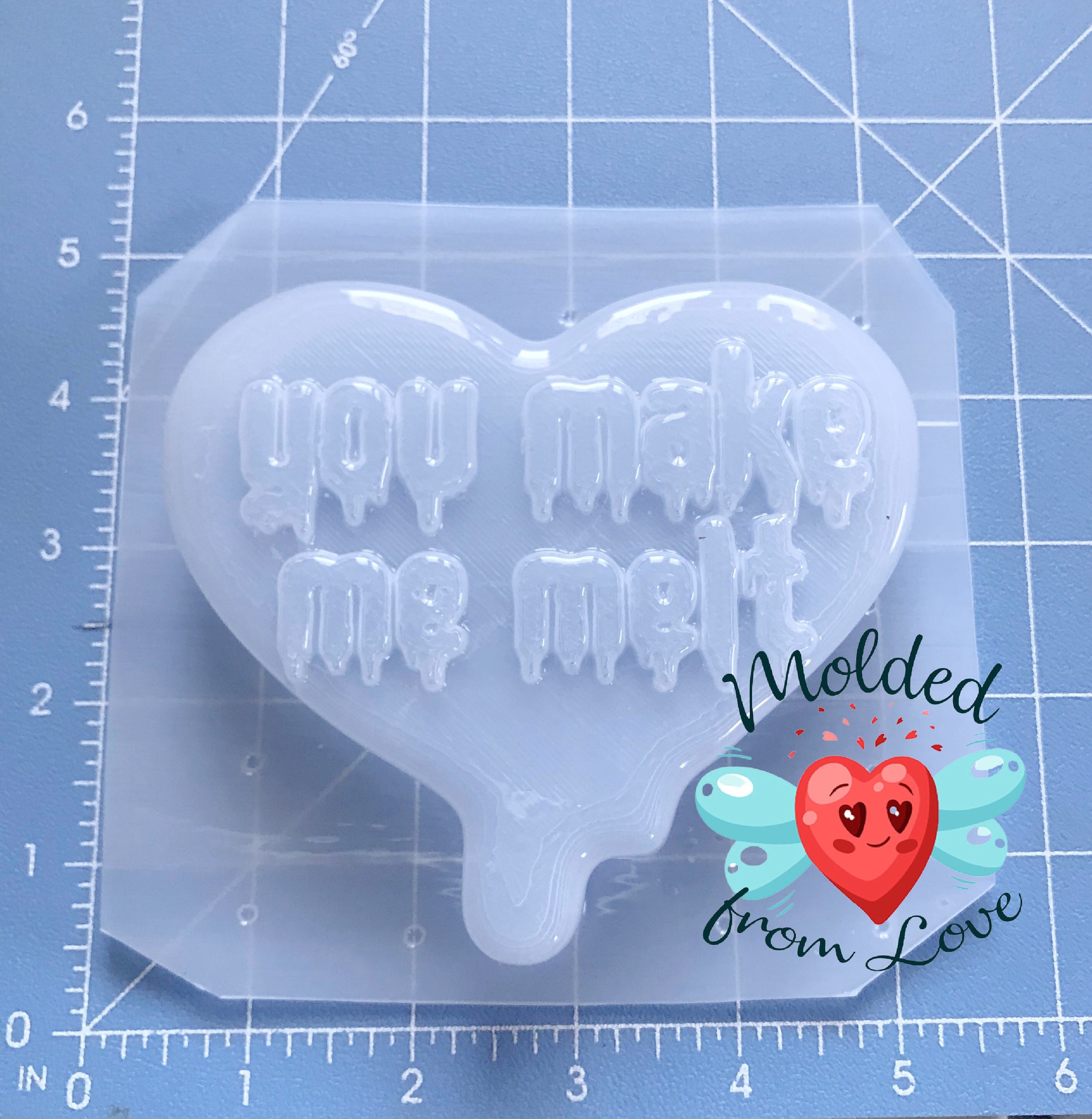 This Mold is a Drippy Heart with You Make Me Melt Soap or Bath Bomb Mold Plastic is food safe 4" x 3.5" x 1.4"deep ★ All molds are handmade by Molded From Love and may take up to 5-7 business days to be made and shipped. ★ All molds are made out of LDPE plastic (not silicone). The plastic I use is a semi-hard, yet flexible plastic. ★ It is a food grade plastic with melting point of 220°F. If you use the mold with non-food materials, please be sure to only use that particular mold with non-food items. I suggest purchasing a second mold if you intend to make food items. ★ This mold may be used with bath bomb materials, soap, wax, resin, clay, plaster, fondant, chocolate, candy and so much more. ★ Please check the size of the mold to make sure it will work for your purchase. Some molds are small and made for resin, while others are for bath bombs/Soaps chocolates ect. I post the size in description as well as photo the mold on a measuring board. Each square is 1" inch. ★ Do not put near any extreme heat source such as an oven, dishwasher, microwave or open flame. The molds will melt. ★ You may sell items created using my molds such as bath bombs, soaps, wax melts, candy, jewelry, etc. However, reselling my molds and/or remolding and then selling those molds is not allowed. ★ If you have any questions before purchasing, please feel free to contact me. Molded from love 2021