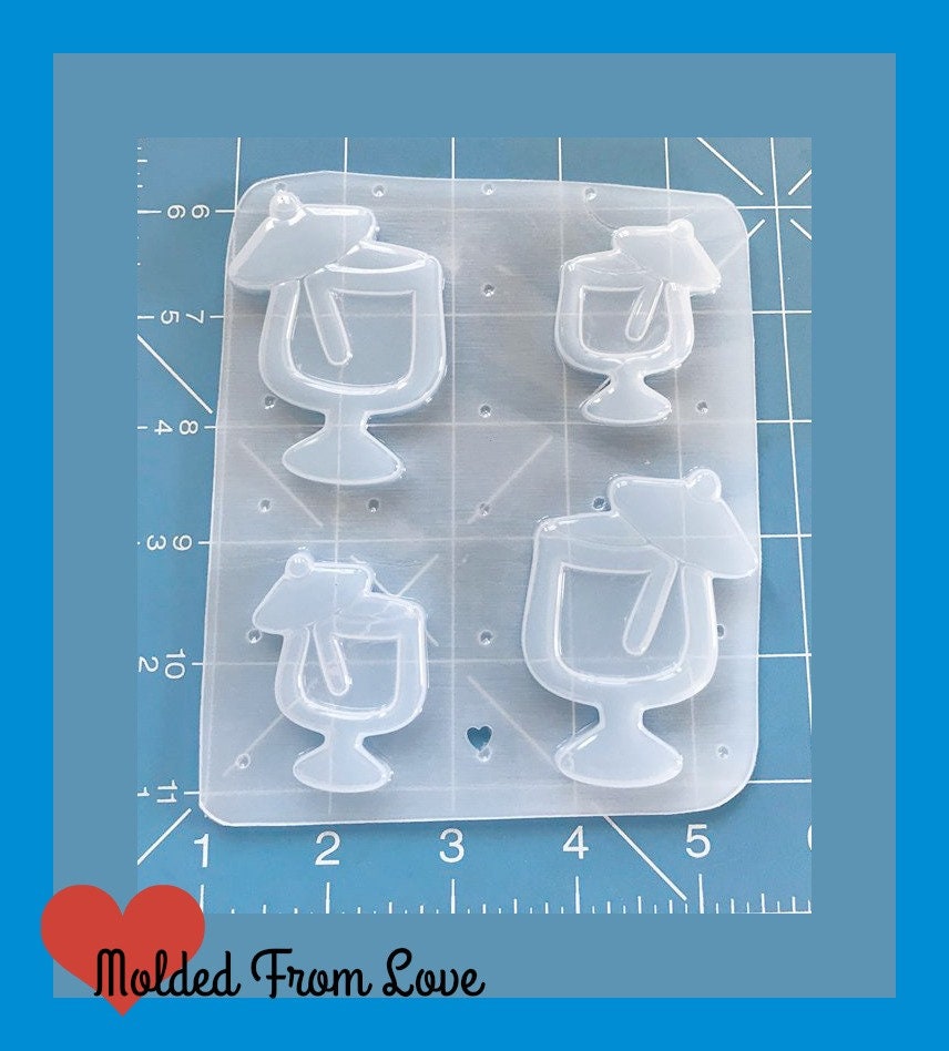 *************************************************************************** This is a handmade flexible plastic resin mold. Pieces pop out easily and will be shiny. *************************************************************************** This mold features 2- left and right facing 2 1/2" drinks and 2" drinks *************************************************************************** If pieces ever come out not shiny, simply coat with resin or resin spray. That is what I do with all of my pieces anyway. Do not put in the oven. **************************************************************************** Feel free to contact me with any questions. Molded from love 2018 all rights reserved