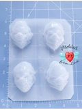 PLEASE READ THE SIZE OF THE MOLD BEFORE PURCHASING!This is a handmade flexible plastic resin mold that can be used with clay, soap, chocolates ect.. Pieces should pop out easily and be shiny. This mold features 4 custom made approx. 2" Grinch inspired faces There may be small/slight 3-D print lines If pieces come out not shiny, simply coat with resin or resin spray. That is what I do with all of my pieces anyway. Do not put in the oven.