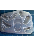 This is a handmade Poly Plastic Mold that is made to use with resin, but, can be used with clay, soap, wax, chocolate ect.. This mold Pallette Features 6 Cavities! 1-31/2" wide Bat 1-2" tall Coffin 1-11/2" tall coffin 1-21/2" tall Screaming fangs 1-2" wide Fangs 1-2" wide dripping blood Do Not put mold in the oven or near heat or flame.