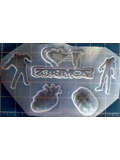 PLEASE READ THE SIZE OF THE MOLD BEFORE PURCHASING!This is a handmade Poly Plastic Mold that is made to use with resin, but, can be used with clay, soap, wax, chocolate ect.. This mold Pallette Features 5 Cavities! it has a 2 1/2" tall Zombie a I Drippy Heart Drippy Zombies Layered word pendant approx. 4" wide x 2" tall another 21/2" tall Zombie a 2" x 2" anatomical Brain a 2" x 2" anatomical heart Do Not put mold in the oven or near heat or flame.