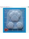 PLEASE READ THE SIZE OF THE MOLD BEFORE PURCHASING!This is a Handmade Flexible Plastic Resin Mold.that is Made with a Flexible Polyplastic. This mold is Great for Resin, Polymer Clay, Plaster, UTEE, Soap, Candles, Fondant, Chocolate, Candy. Please Note Some Molds may not be deep enough for Soap, Plaster and Candles. Contact me if you would like the mold made deeper for that purpose. This mold features a super cute 21/2" wide Paw Print and 2 smaller 1" wide Paw Prints All molds are made to order, there is a 7-14 day waiting period. Molds are made and shipped in the order they are received. Contact me if you need your mold/s sooner.